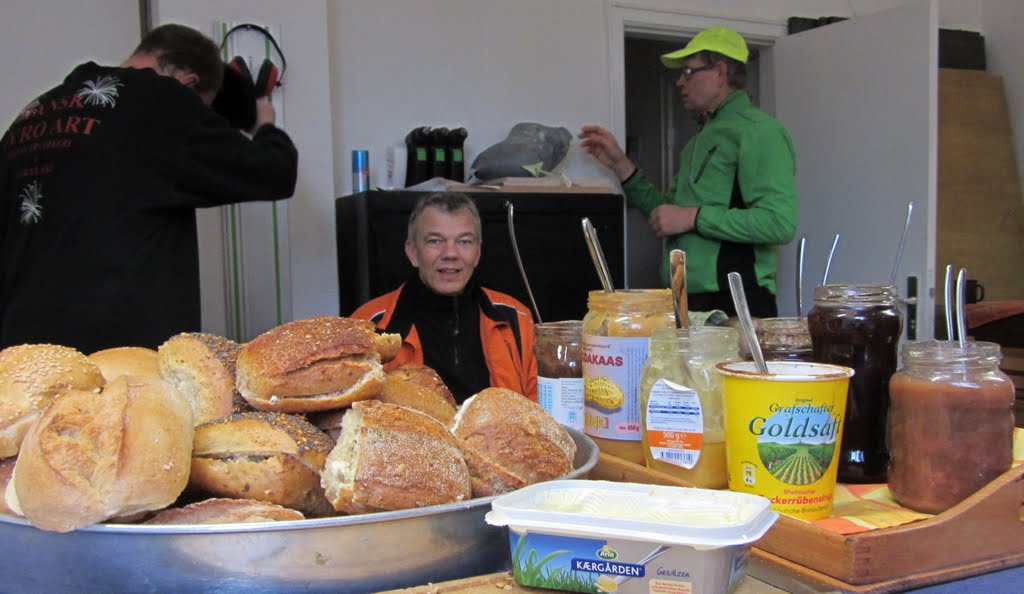 Nach zehn weiteren Kilometern gab es dann im Atelier, hervorragend vorbereitet von meiner Frau Helga, das „richtige“ also das vierte Frühstück. 30 Brötchen waren bestellt und aufgetischt.